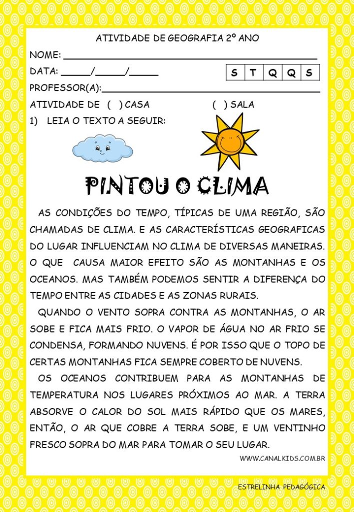 Atividade de geografia 2ºanoAtividade de GeografiaTodas as Atividades By Profª Valéria Dias Compartilhe FacebookPinterestImprimaWhatsAppTelegram Compartilhe FacebookPinterestImprimaWhatsAppTelegram