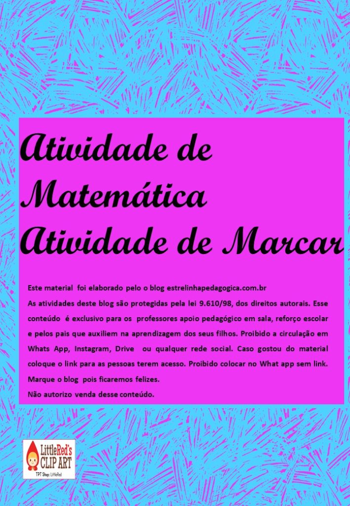 Atividade de Matemática de hoje são varias atividades para marcar.