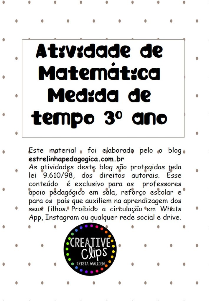 Atividade sobre a medida de tempo. Muitas vezes fazendo querendo entender melhor o “tempo”. Que muitas vezes passa tão rápido e as vezes tão devagar.