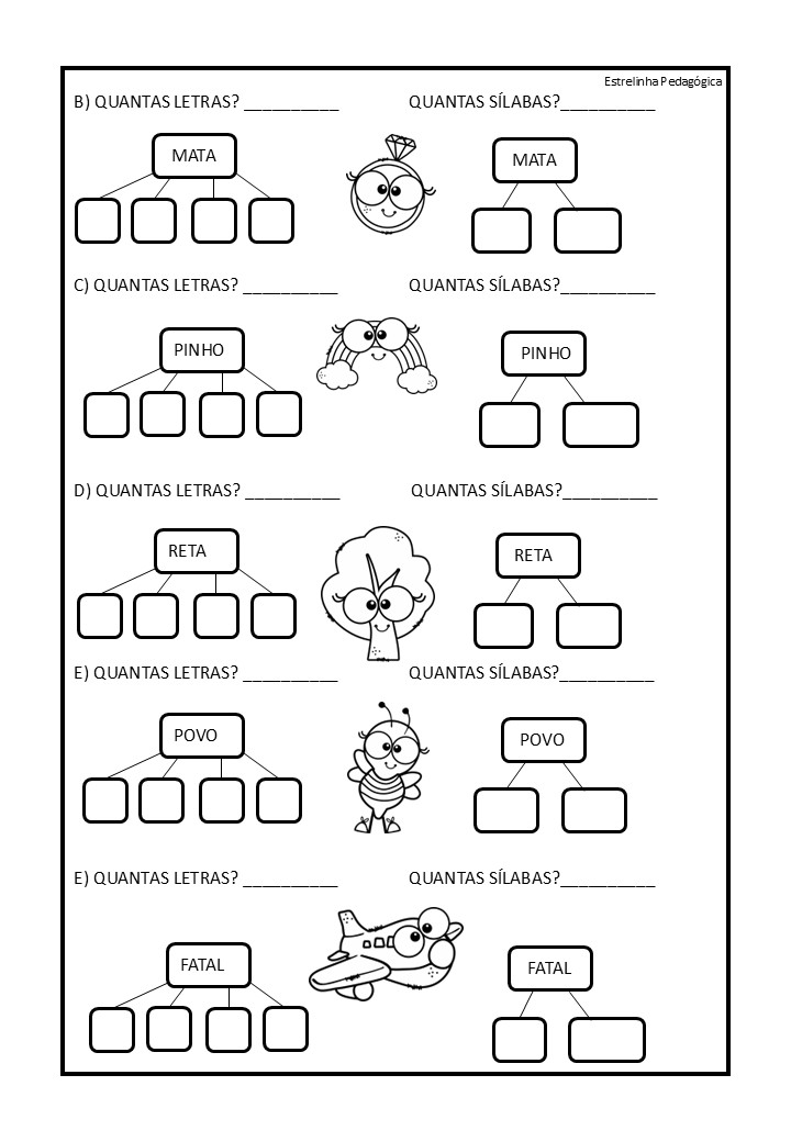 ATIVIDADES 1º Ano Contando letras e sílabas