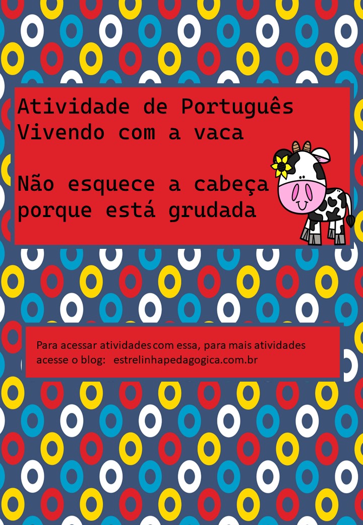 Atividades de Conto de hoje vem em dose dupla o primeiro texto vivendo como uma vaca que é uma atividade de conto e que o morador pede ajuda a um rabino para resolver o conflito que estava vivendo por falta de espaço. Além do texto nós temos interpretação de texto atividade de verbo e da classificação da sílaba tônica. No segundo texto tem uma história com várias expressões do nosso dia a dia algumas expressões antigas e outras que usamos até hoje. Além da do texto e da interpretação de texto atentamente temos também atividade de acentuação gráfica e verbos. Essa atividade seria muito bom como para casa são textos longos e que retém um pouco mais de atenção em sala de aula acredito que a criança não vai aproveitar tanto quanto se fosse como para casa. A professora poderia usar esse texto como um trabalho de recuperação ou até mesmo para casa.
