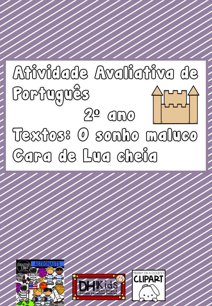 Avaliação de Português bom de hoje vem com dois textos bem interessantes o primeiro e o sonho maluco. Uma criança sonha que está em um castelo e nesse castelo tudo era espelhado e que era tudo ao contrário. Depois desse texto com interpretação vem um outro textinho da Branca de Neve que também se refere ao espelho e por último uma definição de espelho como que o espelho foi criado e ele já existia há muitos e muitos anos com várias atividades uma prova bem completa vamos dizer assim. No outra atividade avaliativa de português temos outro texto Cara de lua cheia da autora Maria Mazzetti é uma história bem bonitinha o que ela vai falando várias coisas que contém no texto pra no final você descobrir que o texto é sobre o relógio. Além do texto temos atividades relacionado texto uma outra atividade de história em quadrinhos, para usar a pontuação corretamente. Nome de imagens para identificar escrever o nome, atividades para colocar no diminutivo, sinônimo, antônimo e adjetivo.