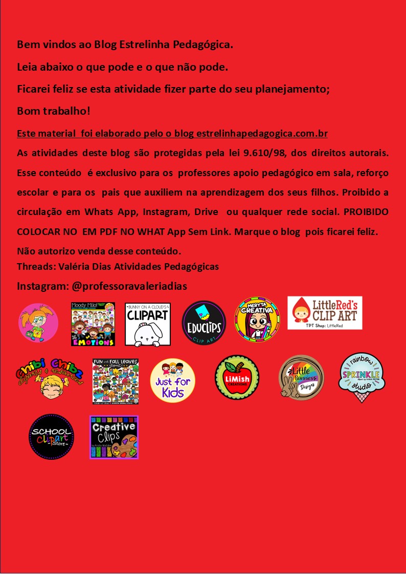 Este material está disponível para pais e professores no blog Estrelinha Pedagógica.