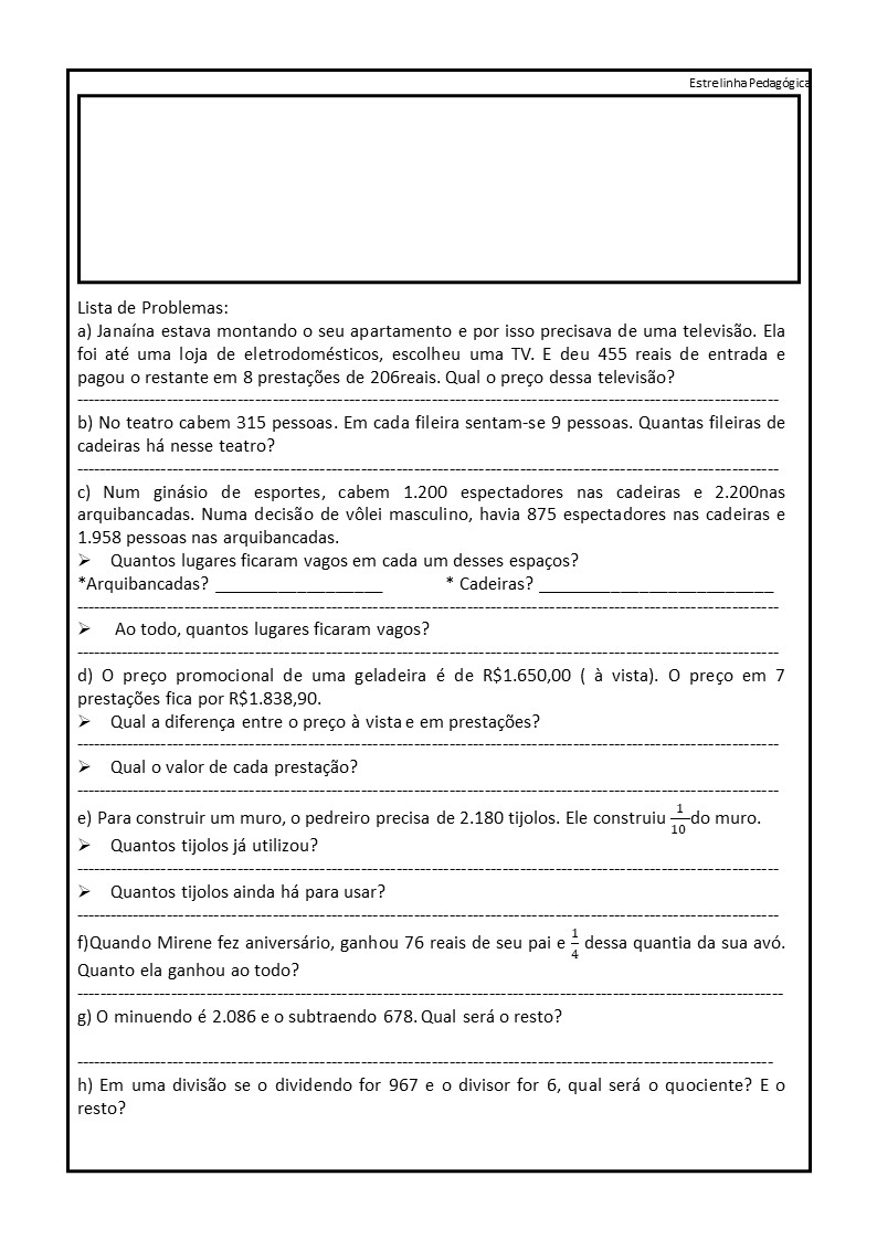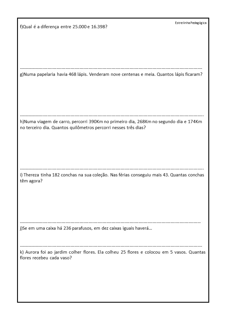 - Histórias Matemáticas: Crie histórias que envolvam problemas matemáticos para resolver.