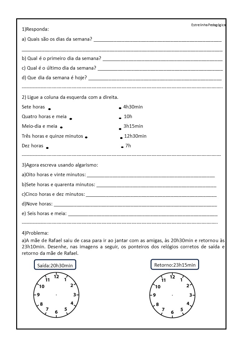 - Calendário: Use um calendário para praticar conceitos de datas, dias da semana e meses.