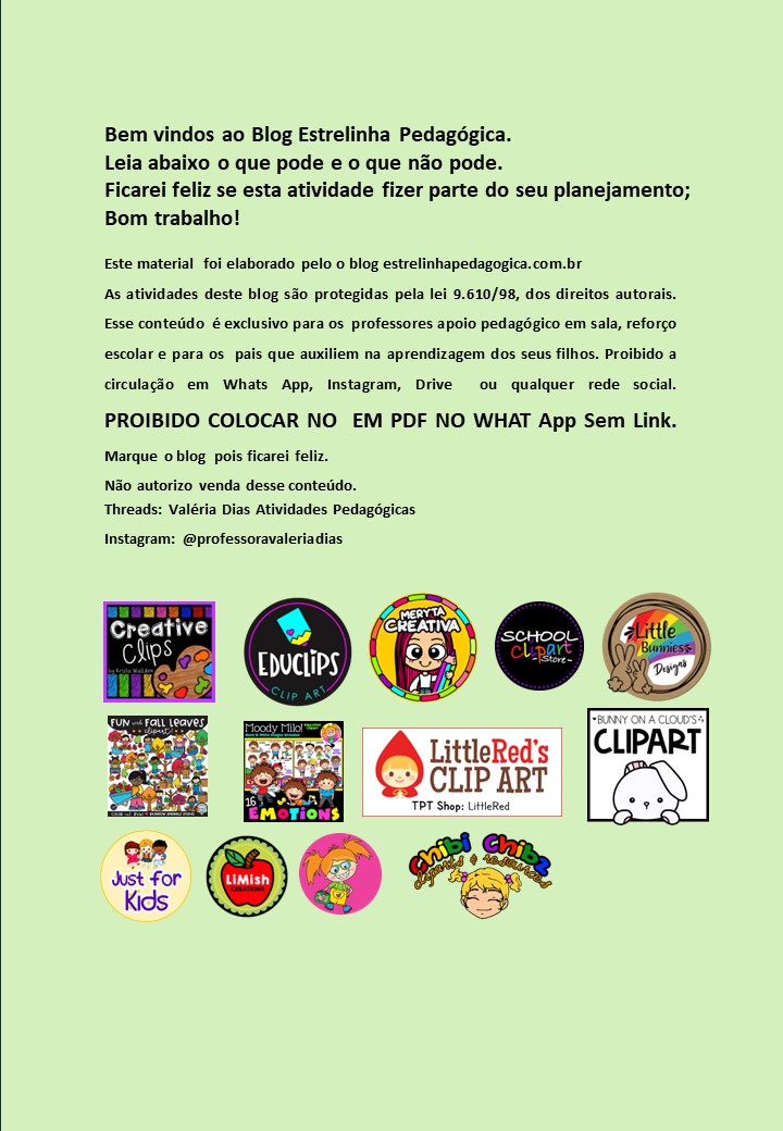 Para adquirir essas atividades você pode clicar no link abaixo ou ir ao blog http://estrelinhapedagógica.com.br/