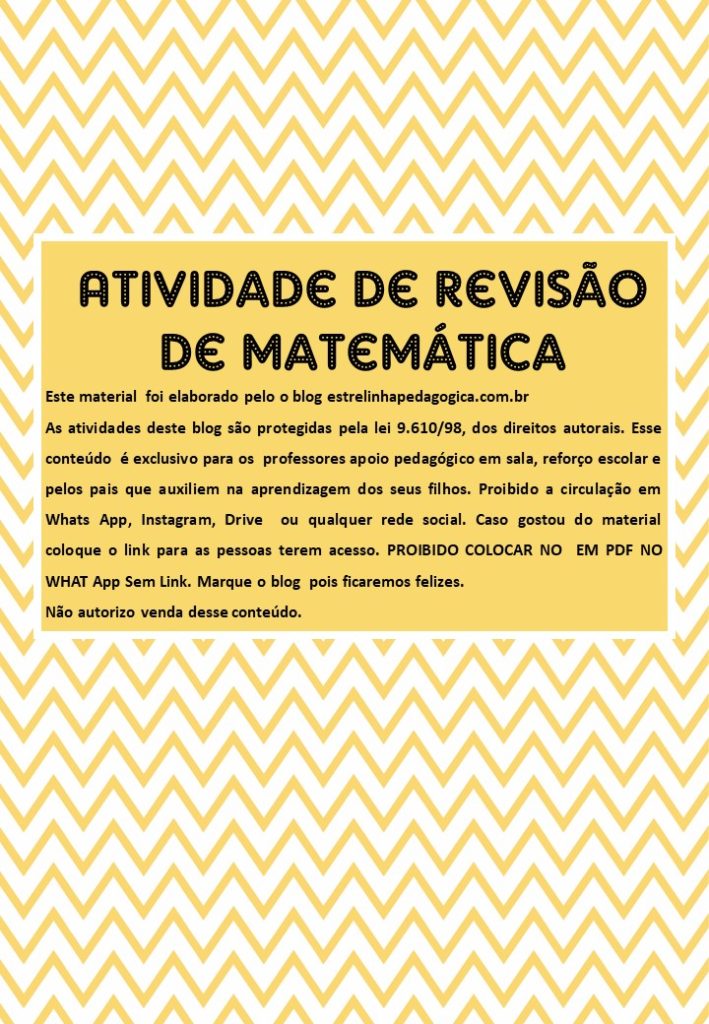 Atividade diversas de hoje é uma atividade para um revisão de conteúdos. Os problemas são de fração e estão divididos por folhas estão de modo que você vai precisar resolver para depois marcar a resposta correta e tem alguns problemas que serão feito na folha. Além das listas de problemas tem atividades de mínimo múltiplo comum, além de expressão numérica e uma tabela para colorir conforme a instrução Além de trabalhar a matemática a concentração trabalhamos também a coordenação motora o recorte. Tenho visto que em escola muitas crianças do quarto e quinto ano ainda não sabe recortar em linha reta. Uma coisa que era pra ter sido trabalhado na educação infantil e vimos que não foi cabe nós professores do quarto e quinto ano superar ou ensinar mais isso para as crianças.