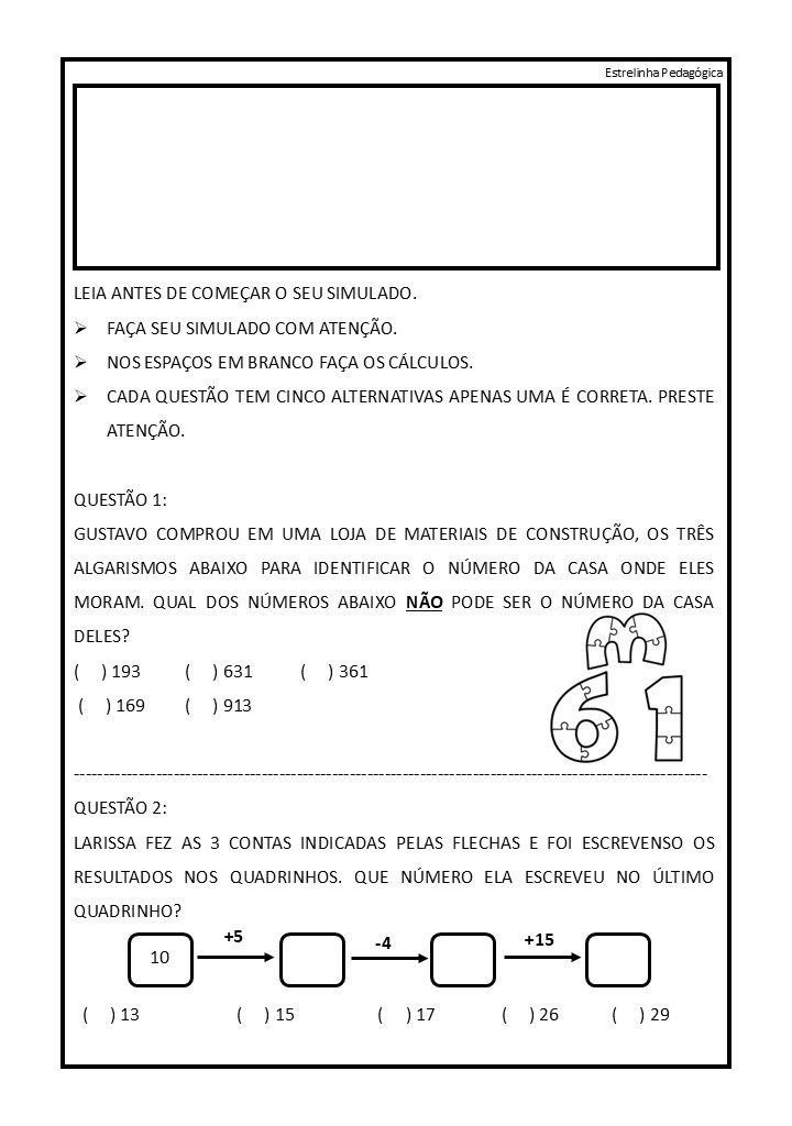 O Simulado de Matemática está disponível no blog Estrelinha Pedagógica, gratuitamente, e pode ser acessado por educadores e alunos para praticar e reforçar os conceitos trabalhados na sala de aula.