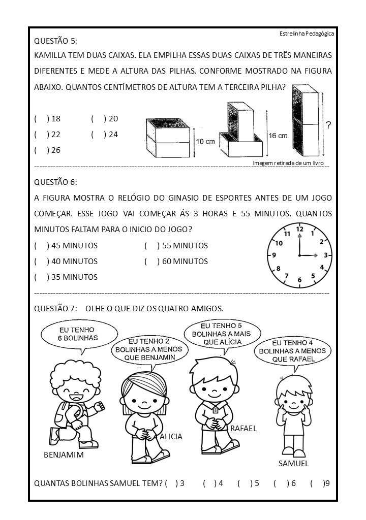 5. Simulado 2º e 3º ano BNCC Noção de Tamanho: Medidas em Centímetros